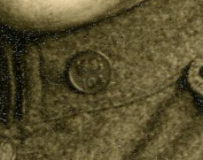 With my super-duper high resolution scanner I was able to grab a high quality crop of the collar disc insignia this veteran is wearing. See that round button below his left cheek? Under high magnification the button/disc reads – 104 with a US monogram above it. This means that the wearer is a member of the 104th Infantry Regiment – one of the regiments that made up the 26th Division. The regiment originally started in Springfield Mass in the mid 1700s to help ward off attacks from the bands of King Phillip’s Native American warriors. This regiment fought with valor in a number of key offensives during WWI. I wish I had a copy of the unit history to use as a reference 😦