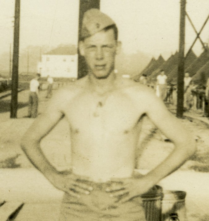 The attached photograph was purchased directly from the son of a 4th Marine veteran who served with Marvin during WWII. Lee was a combat sniper with I Company, 24th Marines, 4th Marine Division and was wounded in action on Saipan. He received the Purple Heart for his wounds. References say that he was one of only 9 survivors of a Japanese attack on his unit http://www.jodavidsmeyer.com/combat/military/lee_marvin.htm. Outside of personal photographs, this is one of less than a handful (literally 3) wartime photographs of Marvin available for view on the internet.
