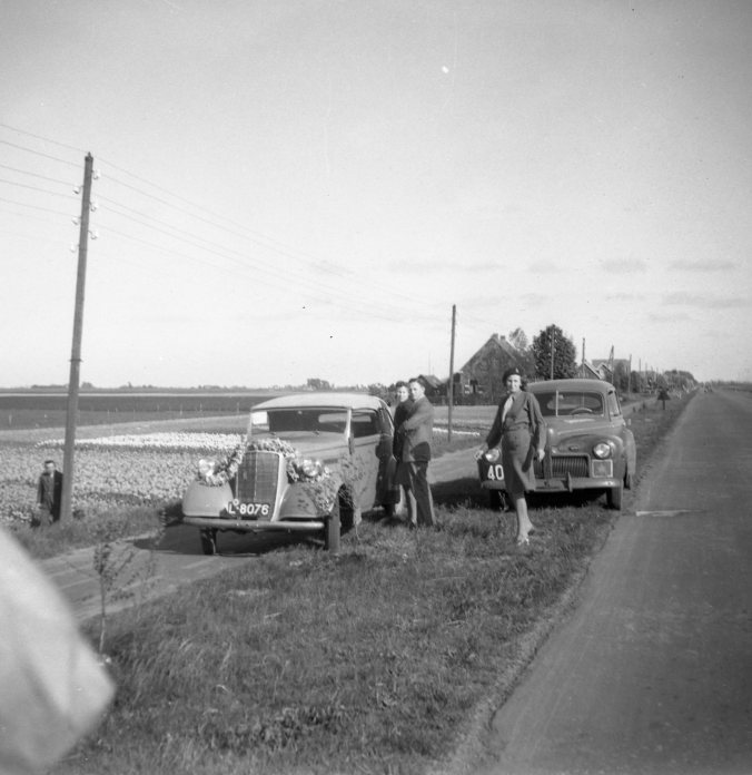 The car with the flowers has Dutch L-reg. civilian plates for the central province of Utrecht, in fact close to the bulb fields (Lisse, for example, is a centre of bulb industry) where that picture was obviously taken.
