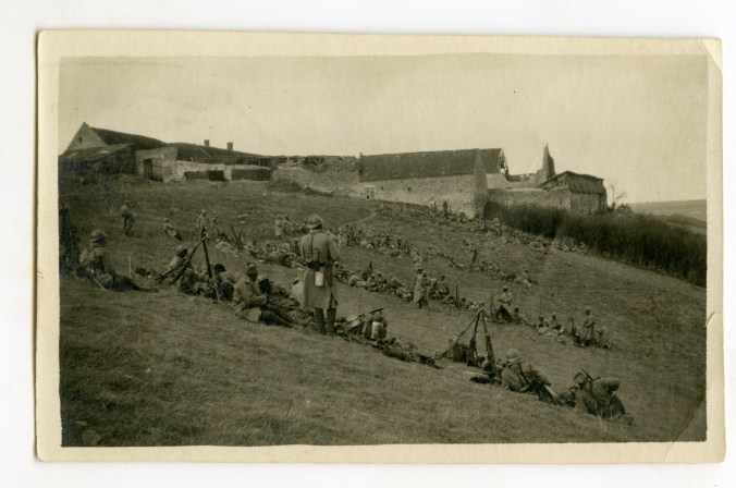 My grandfather was in company F as was Wallie Gleason so they must have worked together. George Williams was in company D and the photo above is of company A. So I think that we are all out of luck. Reading from the notes in the roster book the unit formed in March of 1918 at fort Leavenworth, they left on May 18th and arrived at St-Nazaire on the 19th of June. After that they went to Saumur (Maine-et-Loire).
