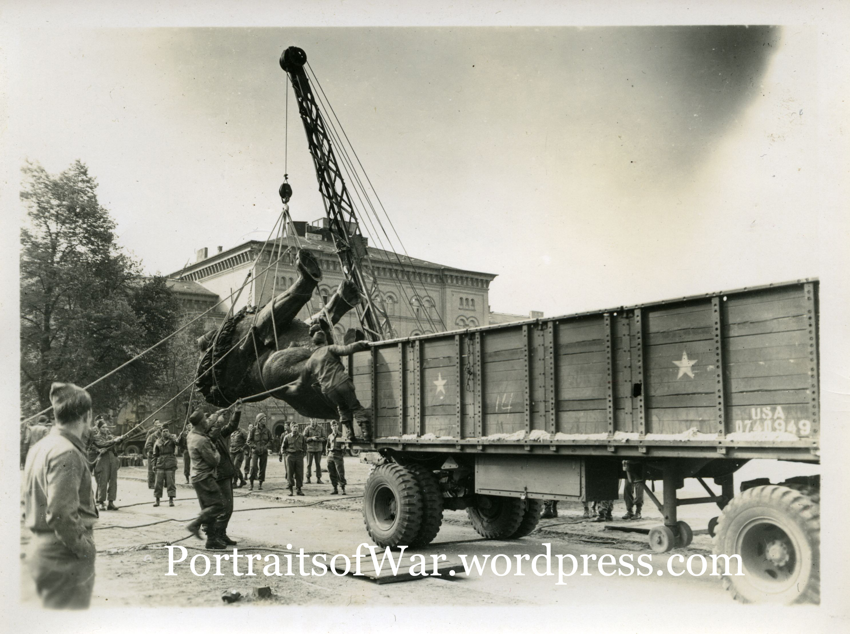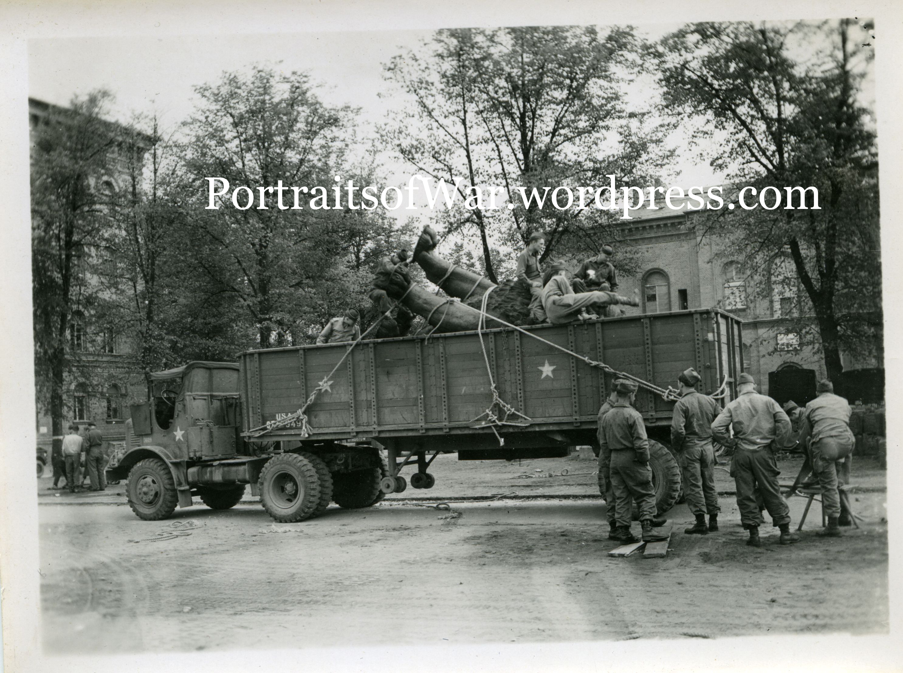 1. I know this is an old post so I am not sure anyone will ever see this, but My grandfather was a US army engineer. He was in Berlin after the war and I have an identical copy of one of those photos. I had assumed he took the photo but maybe not. I would be interested to know any background about where you got the photo and if you ever found any others of it being moved.