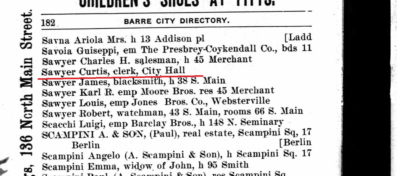 He worked at hotels most of his life, having worked at Clark’s Hotel in Boston in 1917 when he registered for the draft. Previously he served as a clerk for City Hall in Barre, VT – not far from where I work! He started his career early at the age of 17 (at least) and worked as a clerk and hotel man unit his death. He is listed as being tall with a slender complextion with blue eyes and brown hair. He lived nearly 90 years and died in 1980 in Arlington, MA – not far from Boston.