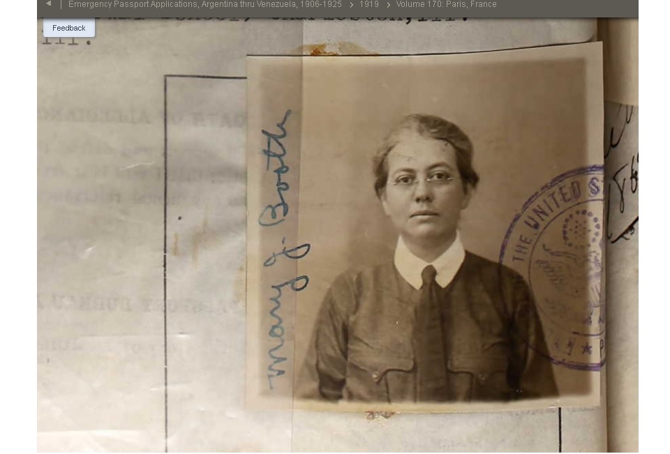 I was able to find some additional images of Mary Josephine Booth using ancestry.com and the wonderful archive of public documents recently made searchable.  See below for shots from her U.S. Passport applications.