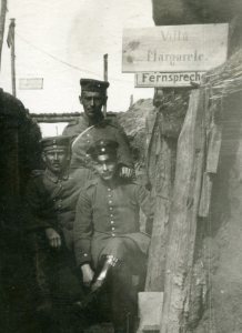 I think the unknown word could be “gern” (happily), even though for that to be true one of the letters would have to be seen as missing — but doesn’t that happen in cursive sometimes? — which would make the whole phrase something like: “three little bitches (in today’s vernacular, because Puppchen — which really ought to be Püppchen; another cursive quirk? — means literally ‘little doll’ but also refers to women like ‘sweet little thing’) of the artillery observation.” Do you think that could possibly be it? 😉
