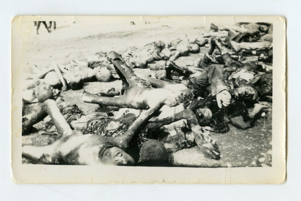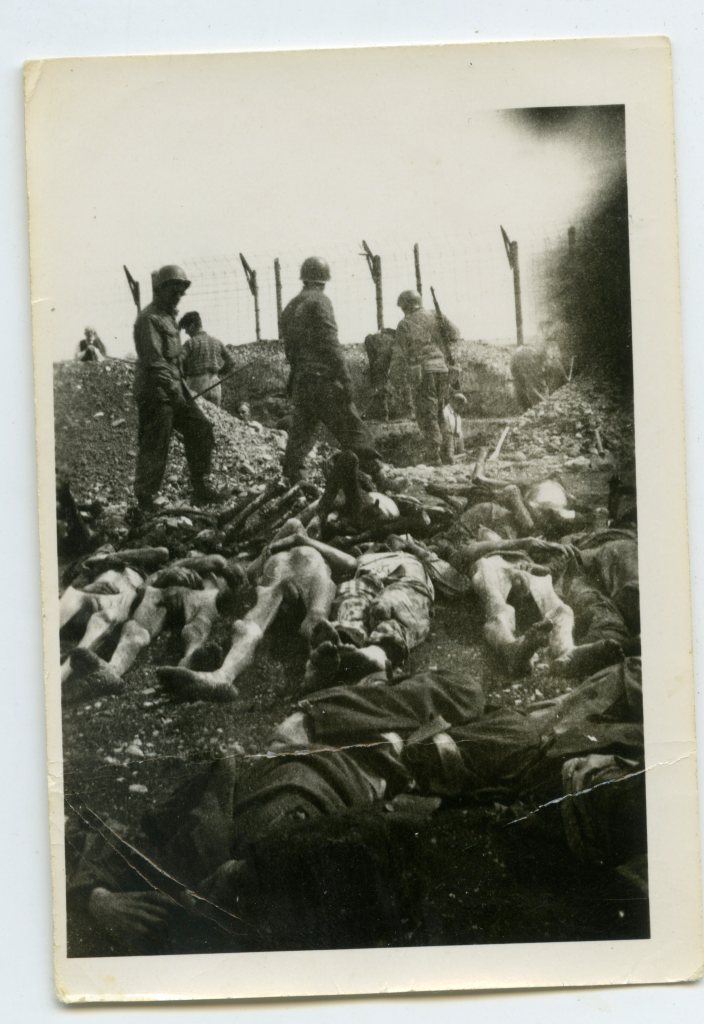 Eight years ago I posted a series of snapshots taken by a US soldier showing the liberation of an unknown concentration camp during WWII. When I acquired the photos, they had no provenance and no information on the reverse side to start the process of identification. Luckily, a blog follower was able to help with the identification of the camp through the same processes I typically use. By observing the surrounding architecture and general contextual clues, he was able to identify the camp as Kaufering IV, a large subcamp of Dachau. Here is what he provided: