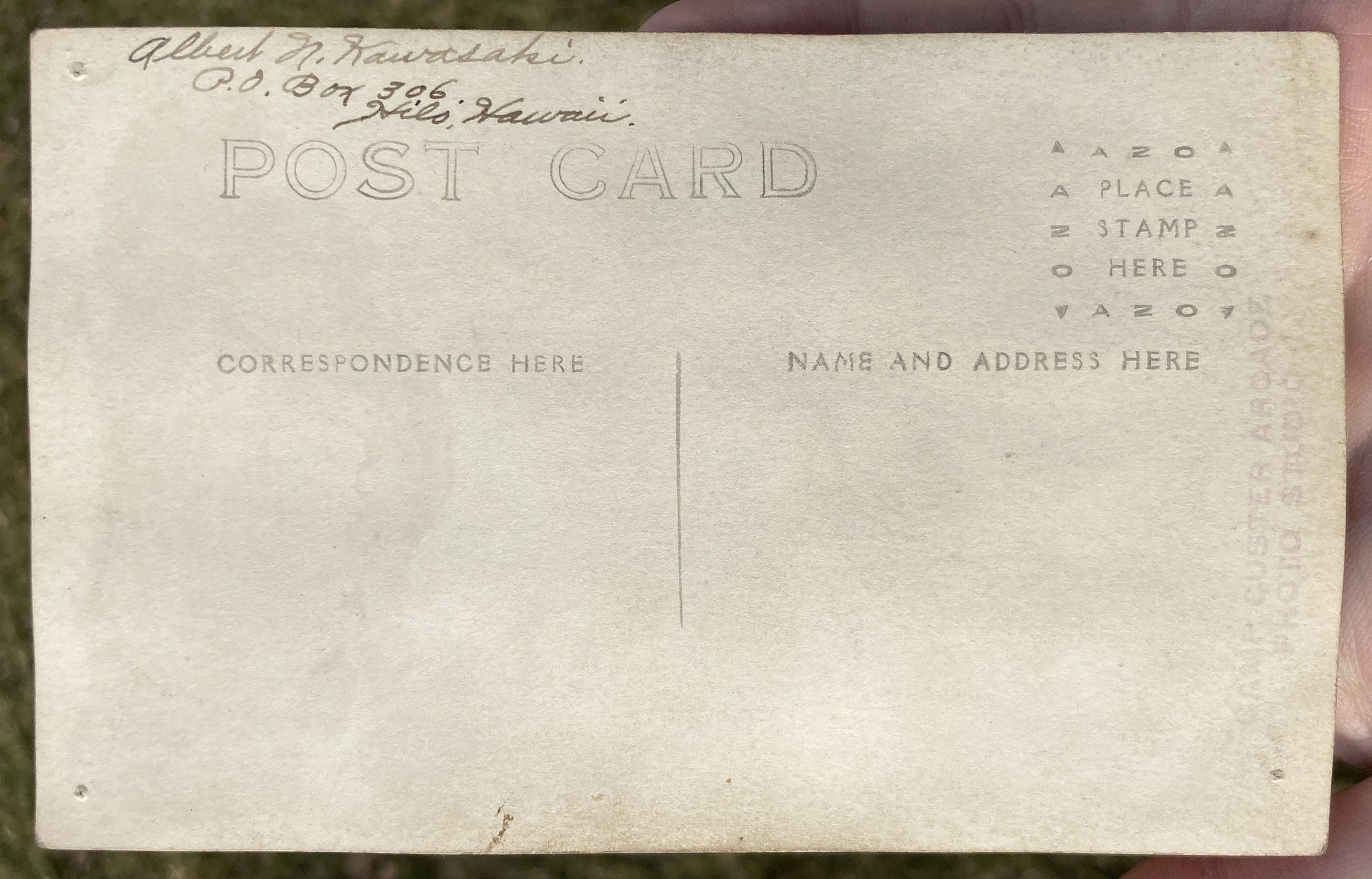 Reverse Side of Postcard Showing Kawasaki’s Name and Address