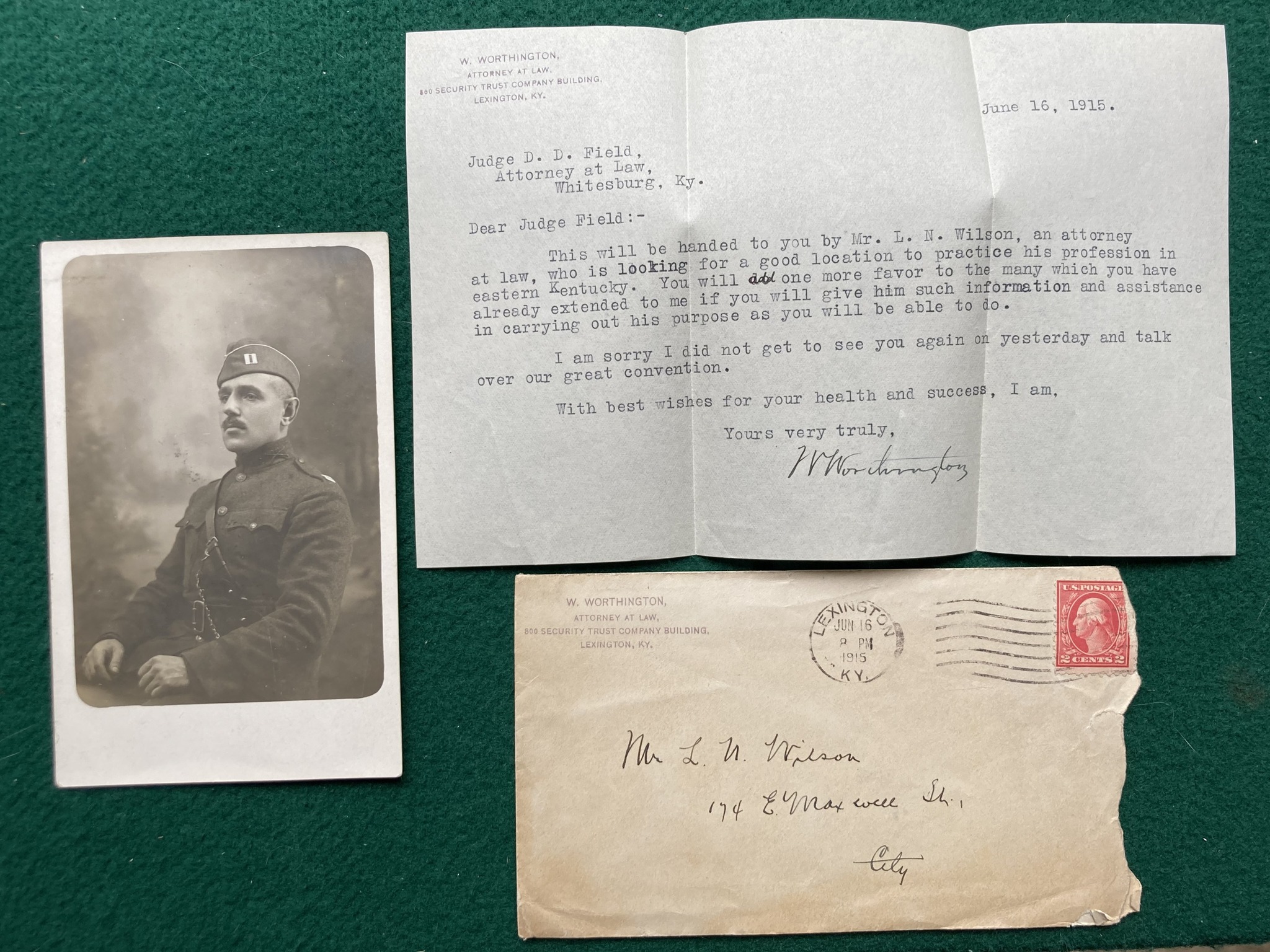 Following his graduation in 1915, Laurance passed the bar and began practicing law in Lexington, Kentucky. He had been working for less than two years when America became involved in the First World War, and Laurance applied as a candidate to the US Army Reserve Corps on May 15th, 1917. He was sent to Fort Benjamin Harrison for officer training and received a 2nd Lieutenant’s commission on August 17th.