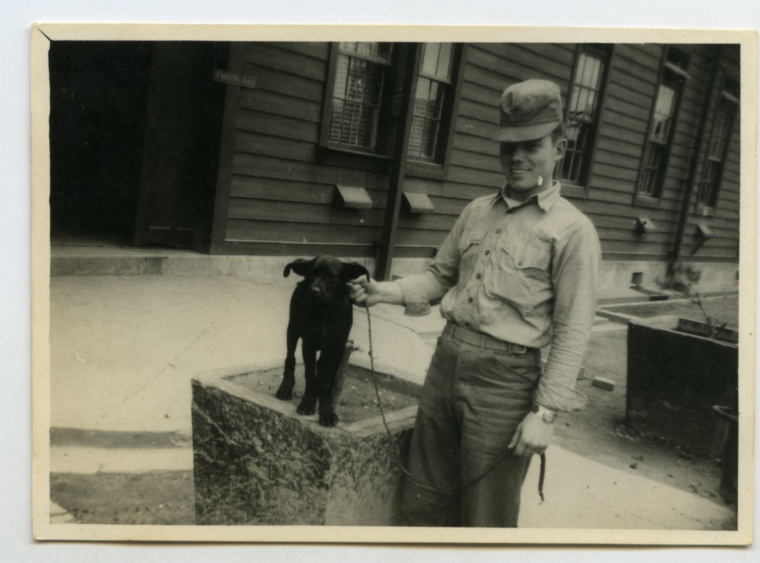 - Photo aesthetics – The young man in the French studio photo (Carte Postale postcards are French) is striking a casual pose with the intention of showing off multiple pieces of his uniform/accessories. He’s sporting a bold eagle/globe/anchor (EGA) insignia on his cap, a very nice privately purchased trench watch on his left hand (indicating that he’s right handed), an overseas chevron, wound chevron and a nice set of sergeant stripes on his right sleeve.