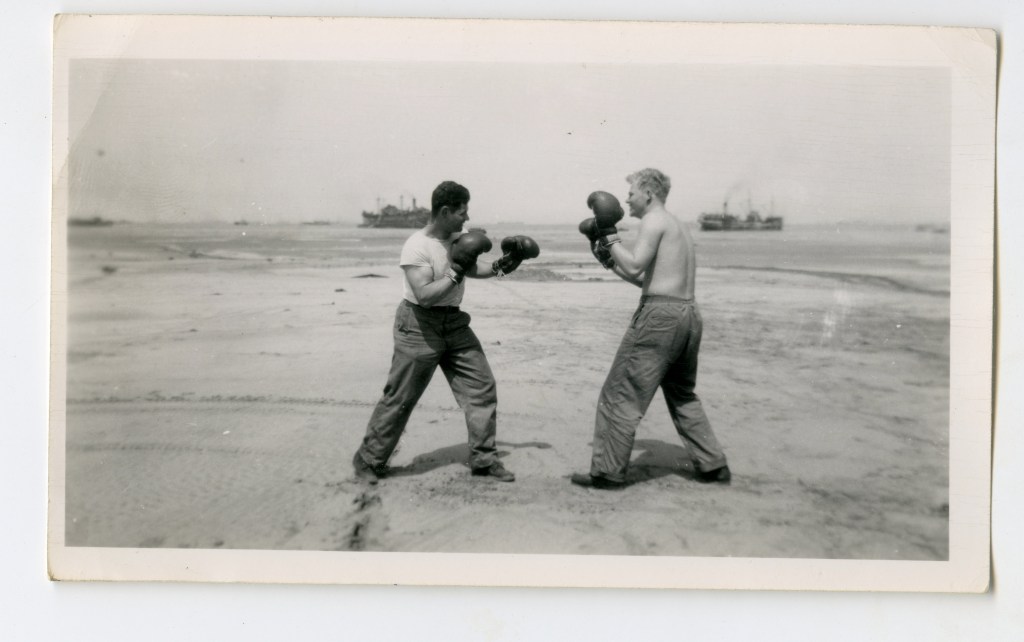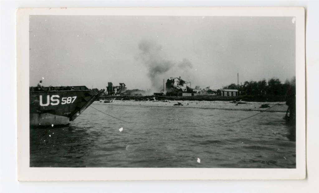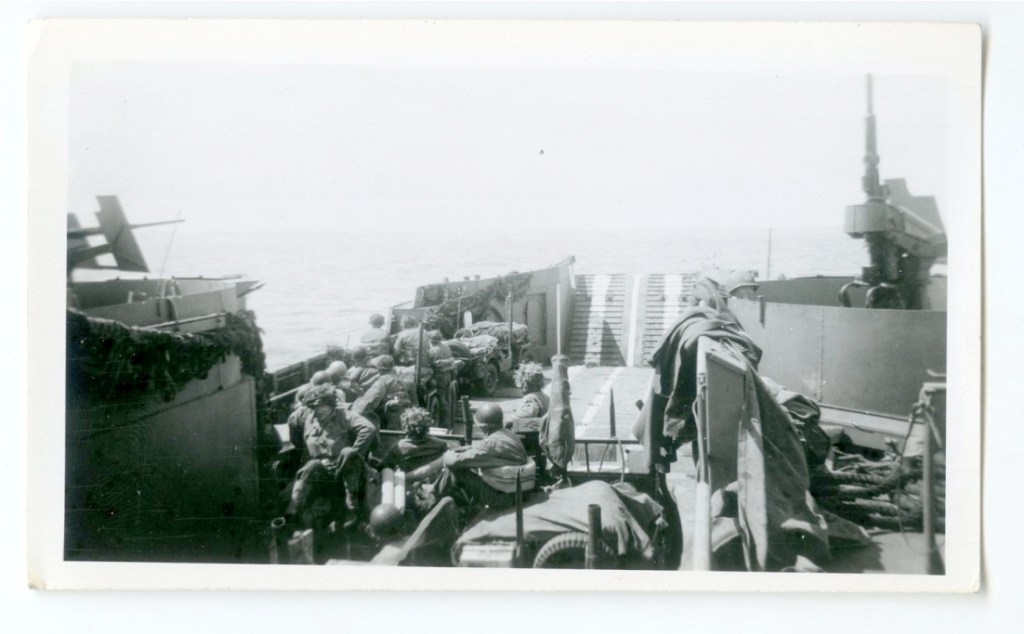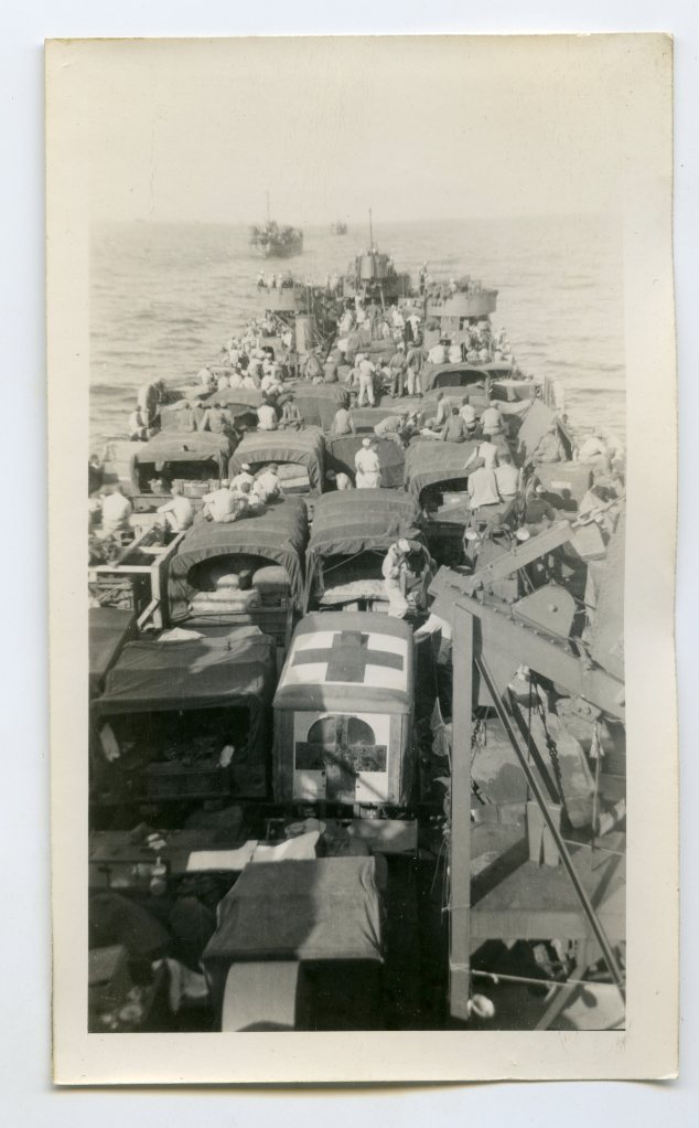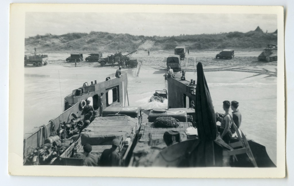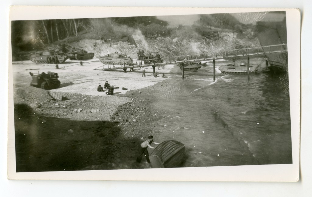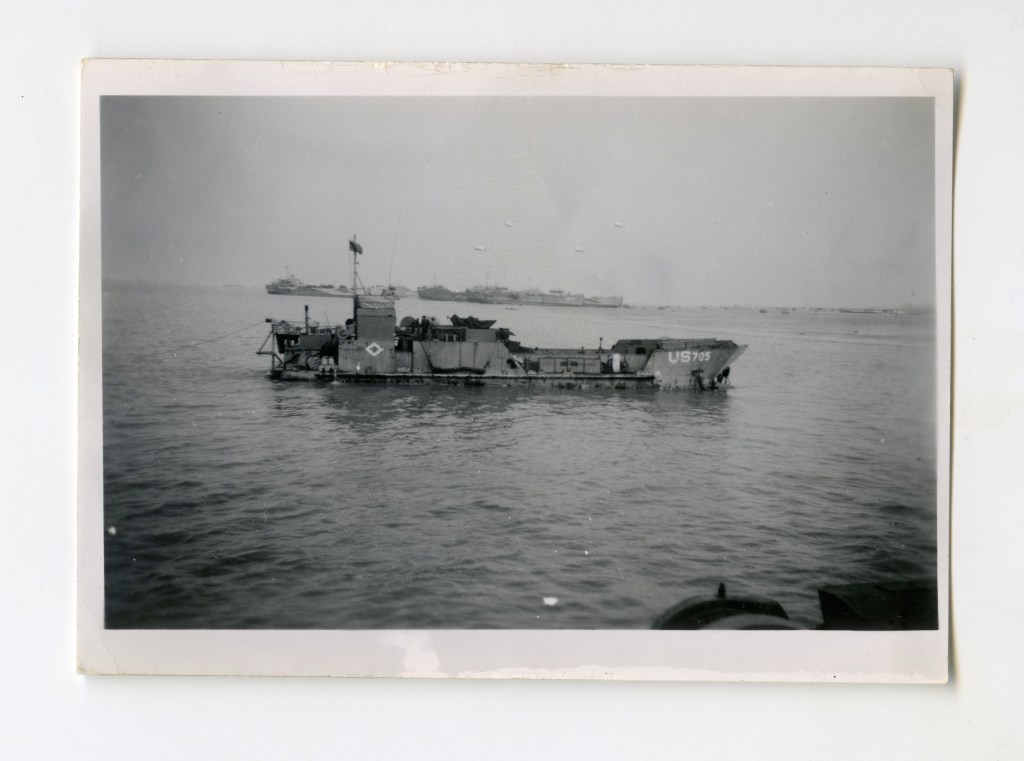 The photo was taken on July 13, 1944 at a port in the South of England.