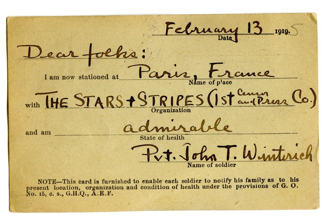 We are having fine weather now. Lots of snow, nearly three feet, weather is war. About zero. {YES! Awesome line}