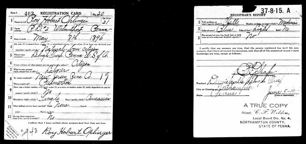 Roy’s WWI Draft Registration Card
