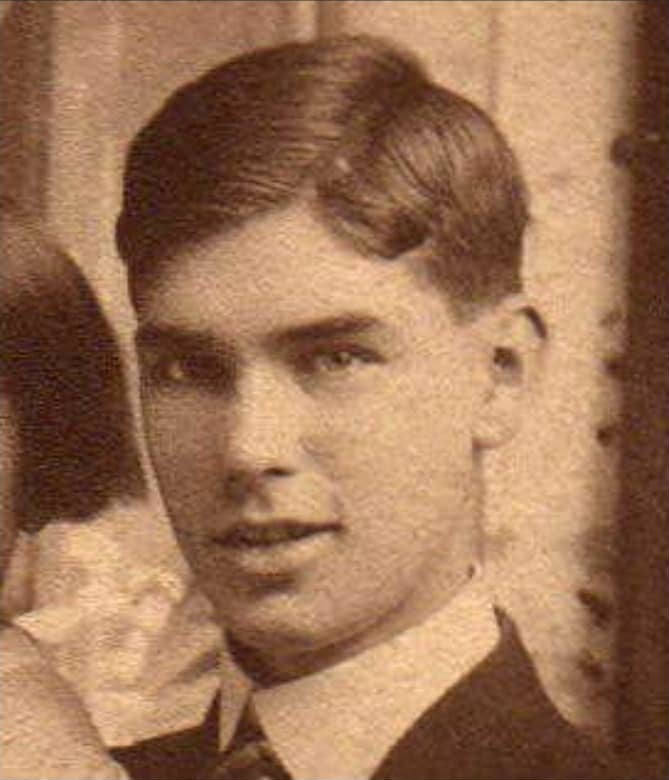 Attempts to find a photograph of Robert Alexander using traditional research methods failed, but I was able to track down a yearbook photo of Robert’s youngest son. Claire Alexander sat for a yearbook photo in 1944; a side-by-side comparison leaves no doubt in my mind that Claire is a progeny of the seated doughboy.