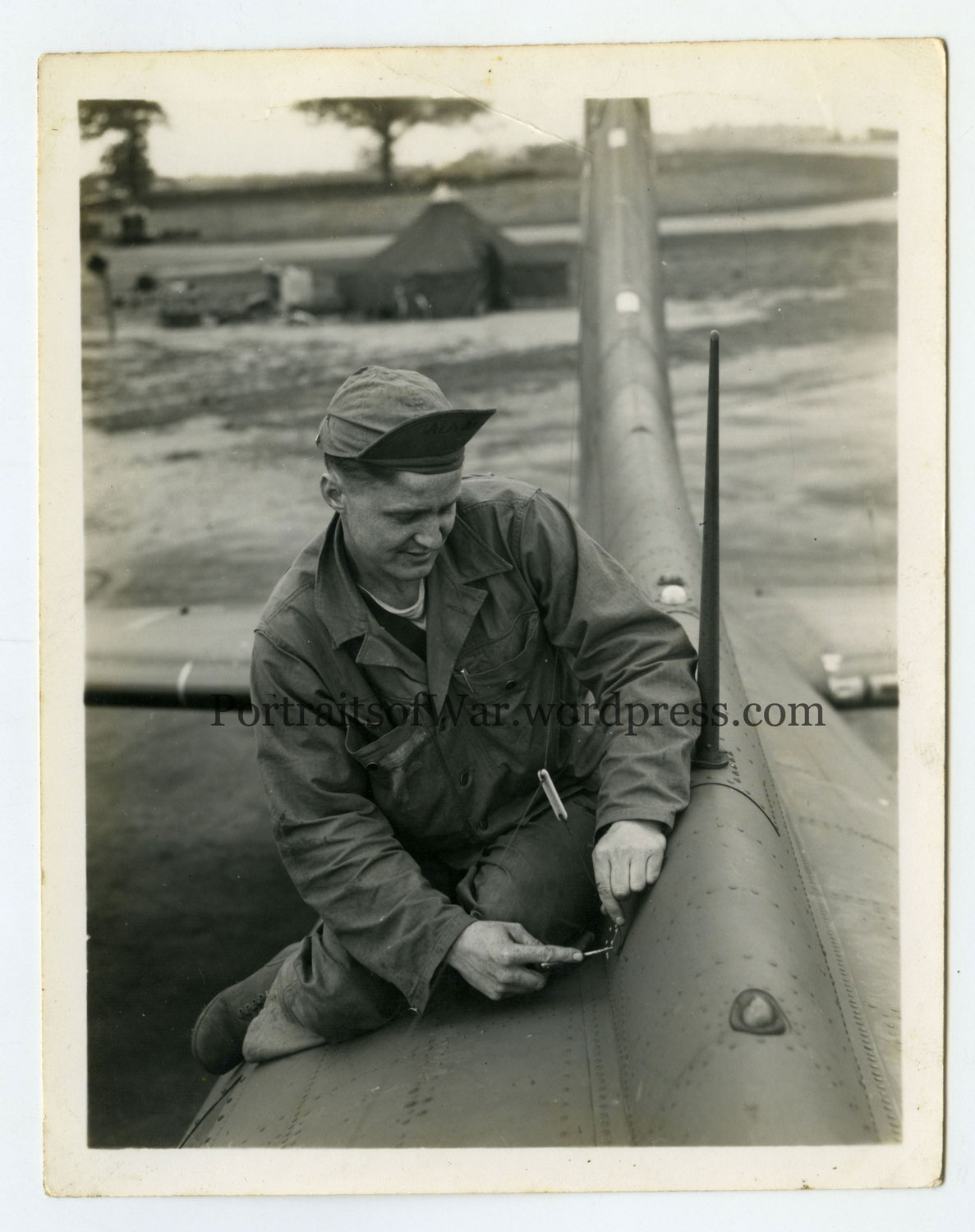 WWII 388th Bomb Group Post – Radio Mechanic Cpl. Roland Downs Fixing a B-17 in Knettishall, England