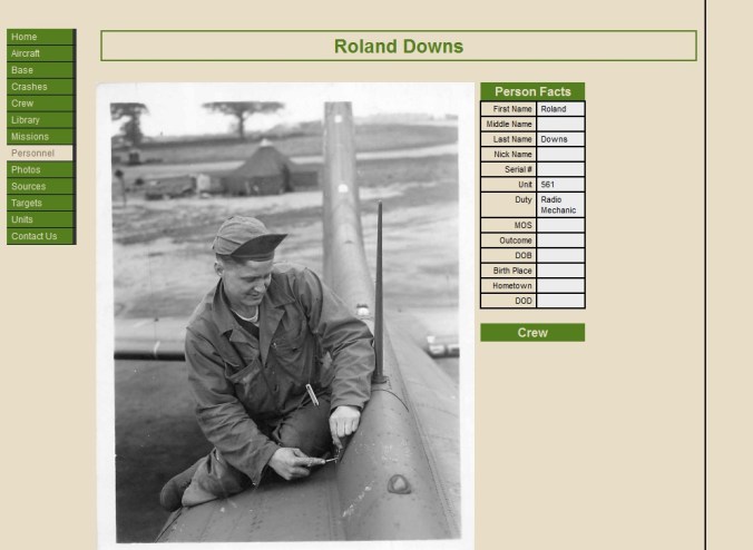Judging by the inked info on his upturned mechanics hat, I felt that this was a likely identification of Mr.Downs.  With this info in hand I visited the 388th Bomb Group website: http://www.388bg.info/