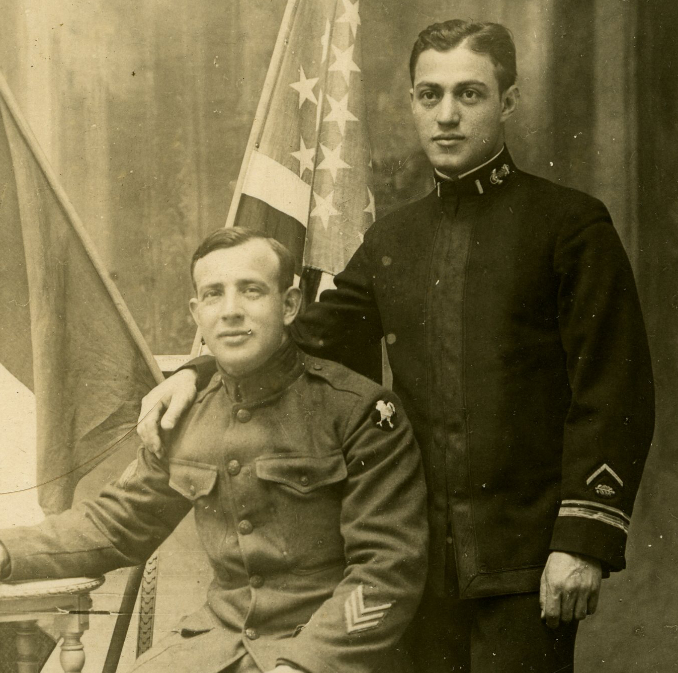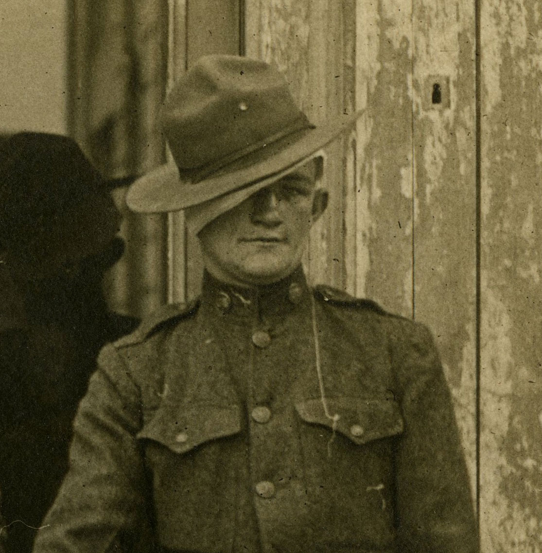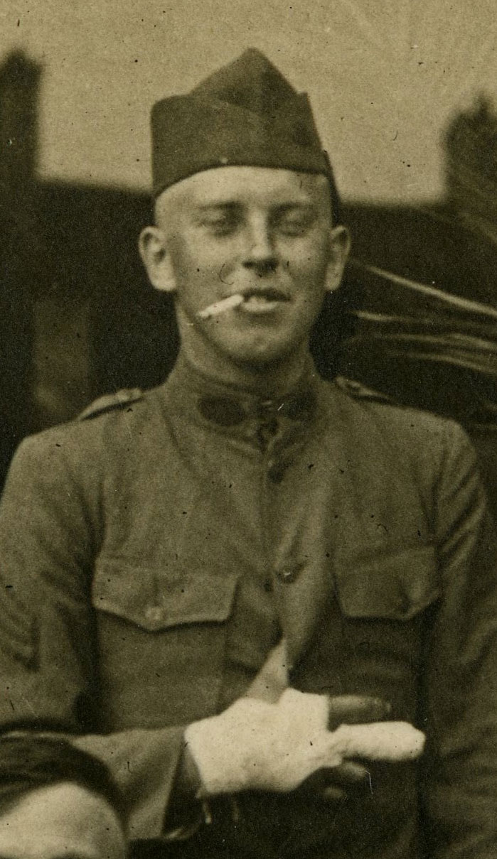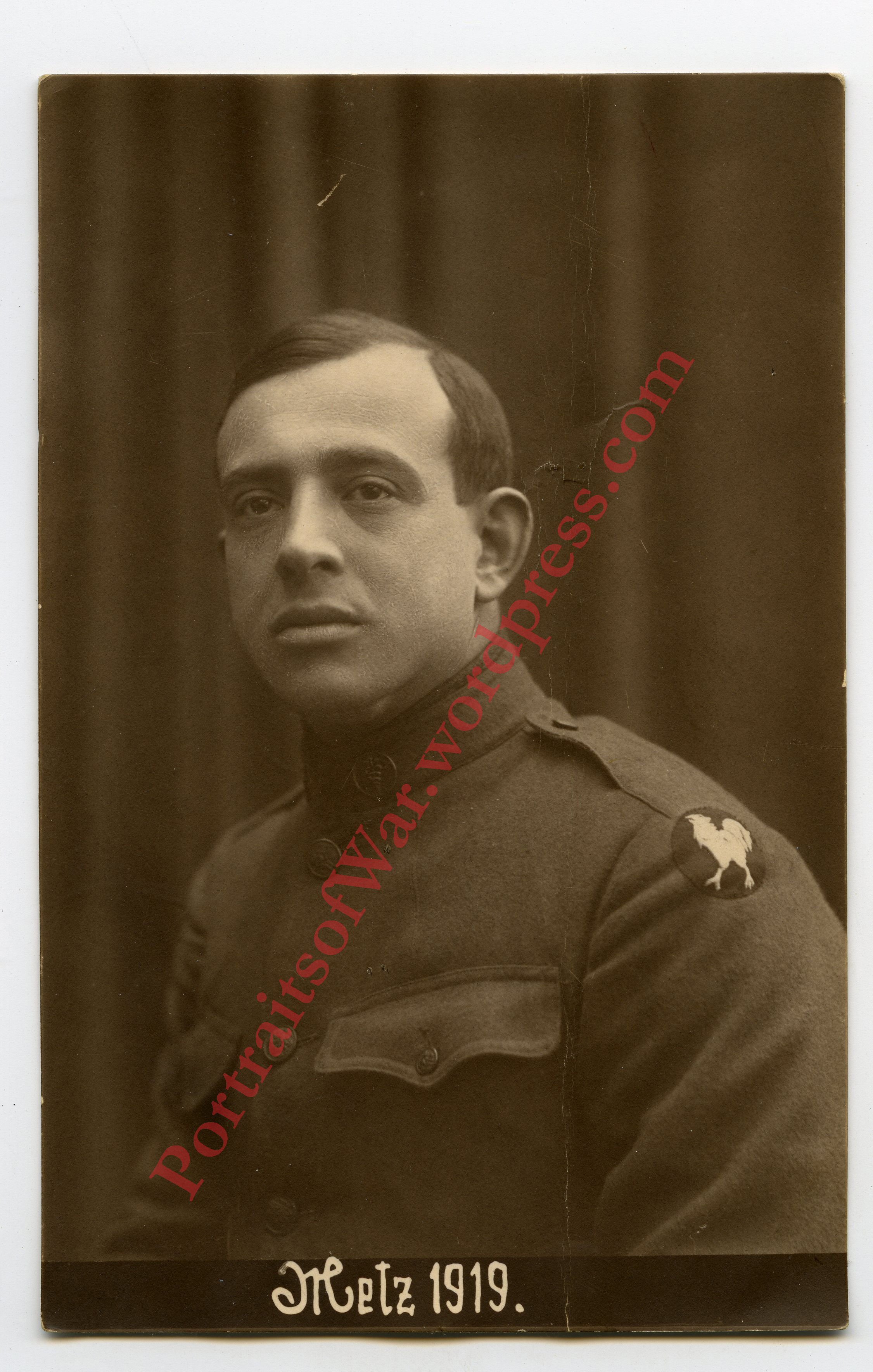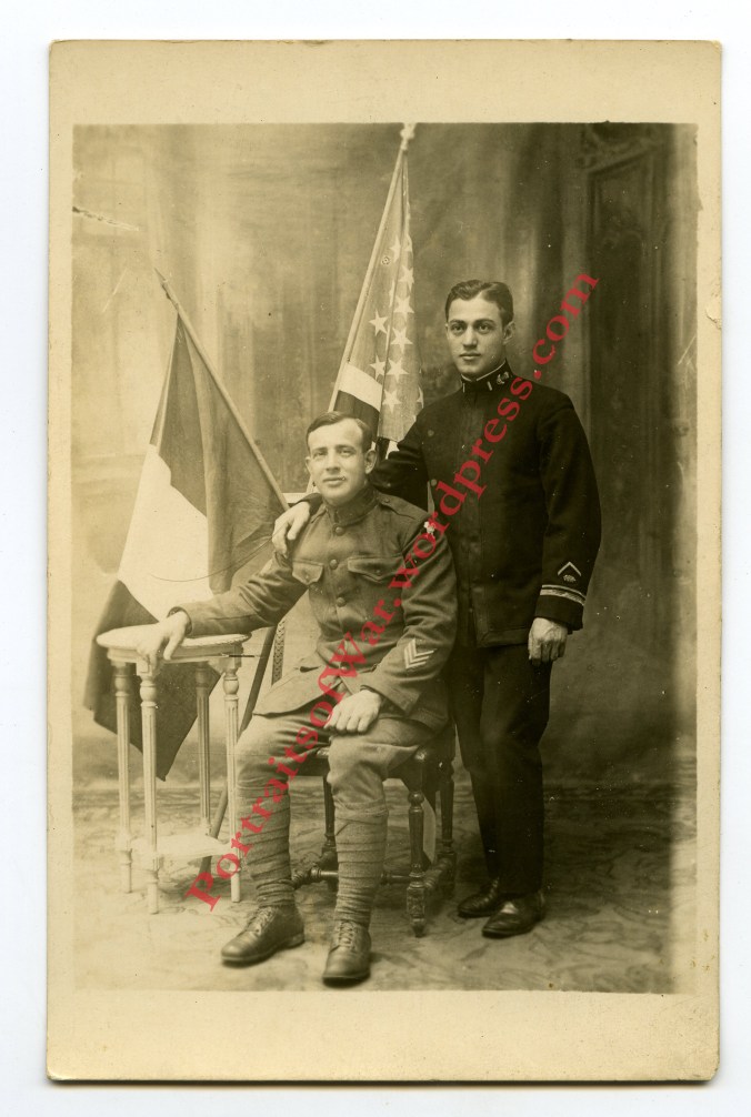 Pearson was from West Falmouth, Maine and was born in January of 1893. He enlisted with the National Guard in Portland in March of 1917 and reported for Federal service in June of that year. He was overseas from March of 1918 to March of 1919. This photo was taken in either late March, or April or May of 1918. He was promoted in early June of 1918. Since this photo shows him as a Corporal at the time of the photo, we know it was taken before his promotion. Also, his lack of OS chevron and the abundance of spats likely points towards an early photo taken in France.