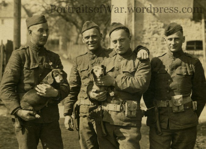 Nothing brings out the personalities of war like a mascot dog! I have at least a dozen decent WWI photos of mascot dogs posing with their adopted owners; these photos never cease to warm my chilly heart! The doughboy on the far left is sporting the Distinguished Service Cross, a medal given out for distinguished service on the battlefield. This award is only second to the Congressional Medal of Honor!