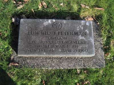 In an incredible stroke of luck I was able to find a 1920s photo of Mr.Peterman on ancestry.com.  Ed was born in Winona, MN on November 13th, 1894 and later moved to Oregon, where he signed up with the forestry engineers.  According to his gravestone, he served with both the 6th Battalion, 20th engineers until 10/1918 and then transferred to the 18th Company in October of 1918.  He is listed as being a corporal and was wounded by enemy action, which is very rare for a forestry engineer.  Ed was also a distinguished member of a very exclusive club. He was on board the S.S. Tuscania when it was torpedoed by a German U-Boat off the coast of Britain on February 5th, 1918. The boat sunk, taking 33 of Ed’s fellow Company F, 6th Battalion, 20th Engineer comrades with her.  The 6th Battalion lost 95 men that day.   Luckily, Ed was one of survivors.