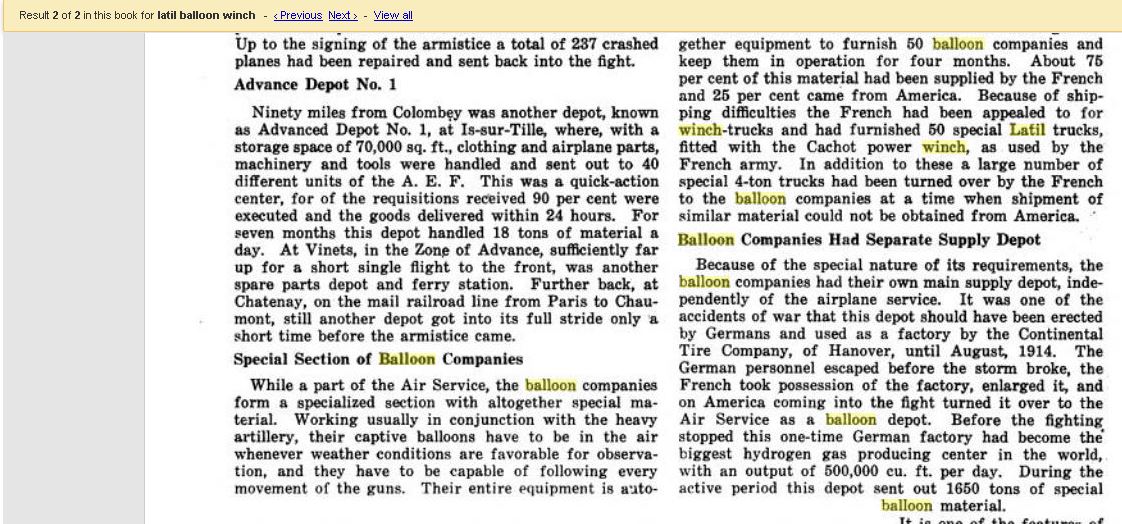 My first hit came with a French search for “winch truck” and provided the above image. I now knew that the Latil Company made heavy 4×4 vehicles for the French army during WWI and provided the American Expeditionary Forces with balloon winches!