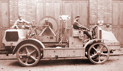 The vehicle/tractor/truck in the image was something I’ve never encountered. I knew it was related to a balloon company, and the large drum on the back alerted me to the fact that it likely was meant to hold and retract cable wire. But how could I figure out the make and model of the vehicle? Balloon Company information is difficult to identify through google searches, but I was able to make some leads by searching in French!