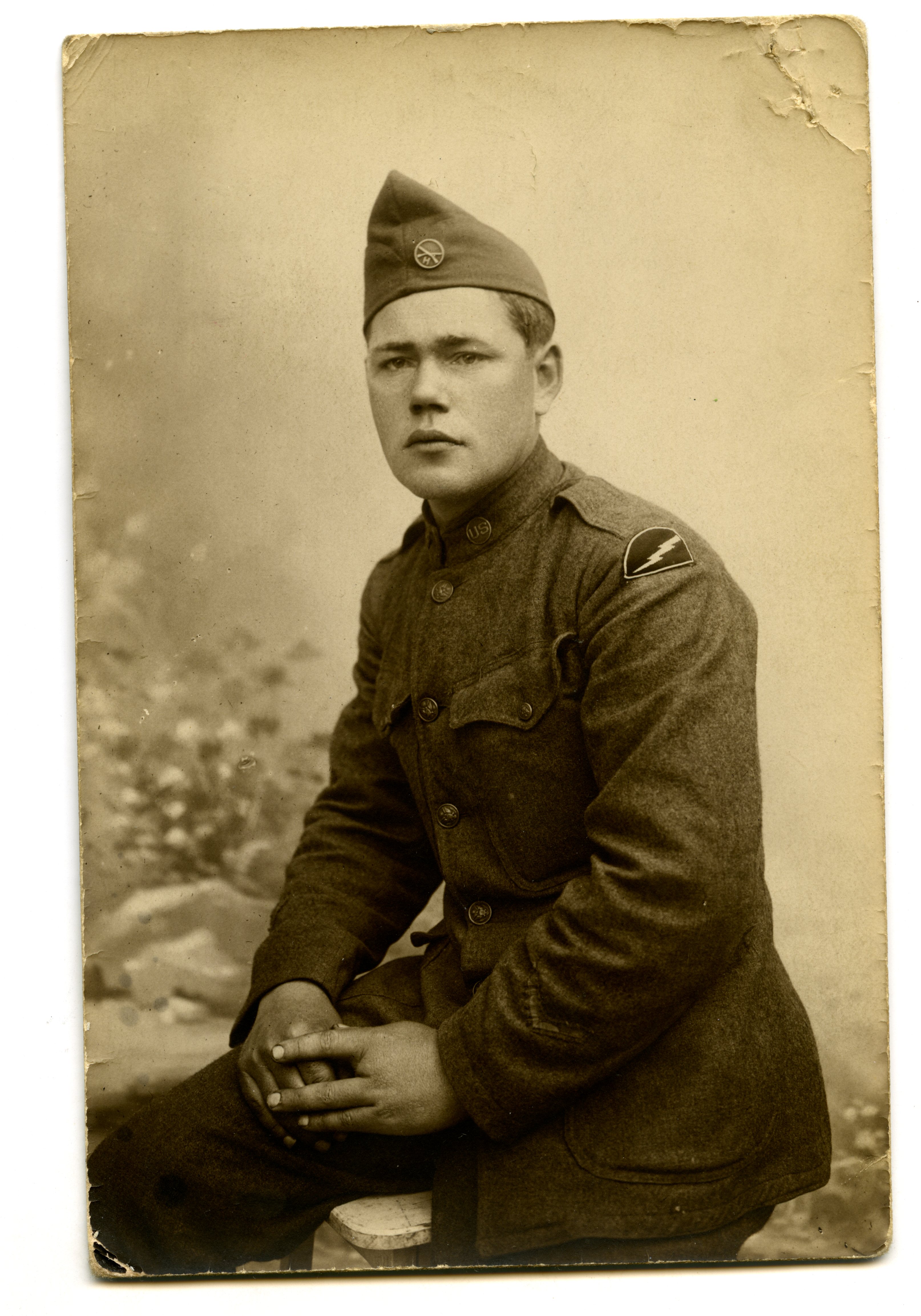 My continued obsession with WWI Vermont material has landed me a new WWI photo taken in France in June of 1918. I literally stumbled across this listing; the seller didn’t mention the fact that the soldier was a Vermonter. Luckily I checked out the back of the photo before moving on to the next auction listing.