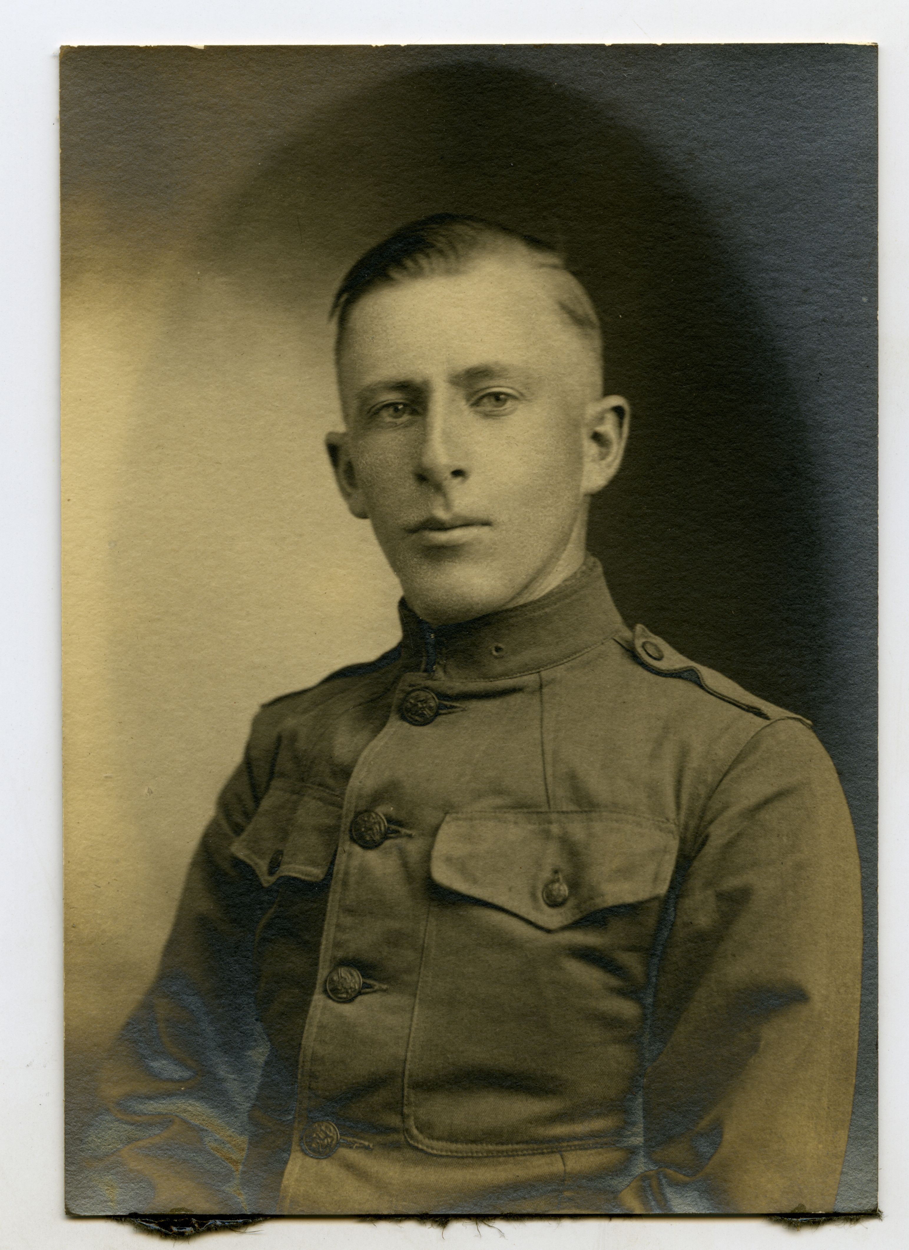 Here’s a good one! A collector friend of mine pointed out a freshly listed eBay auction for an identified Vermont soldier during WWI. Armed only with a name and general location, I was able to uncover a treasure trove of material on our seated friend.