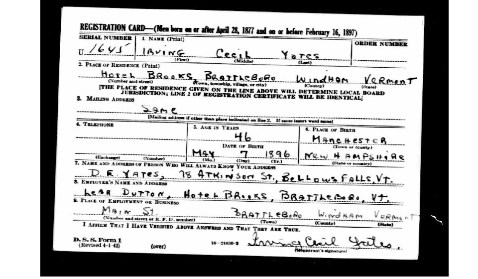 After the war he moved to Brattleboro where he worked in the laundry industry. He passed away in 1975 and is buried in Oak Hill Cemetery in Bellows Falls, VT.