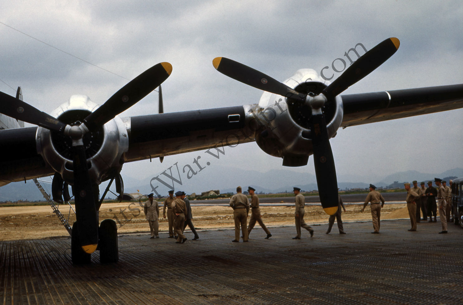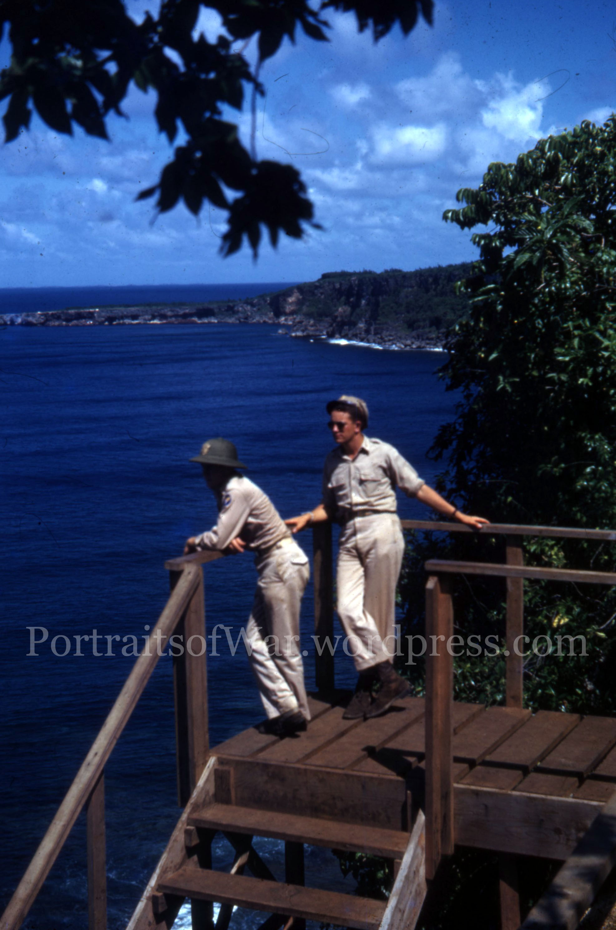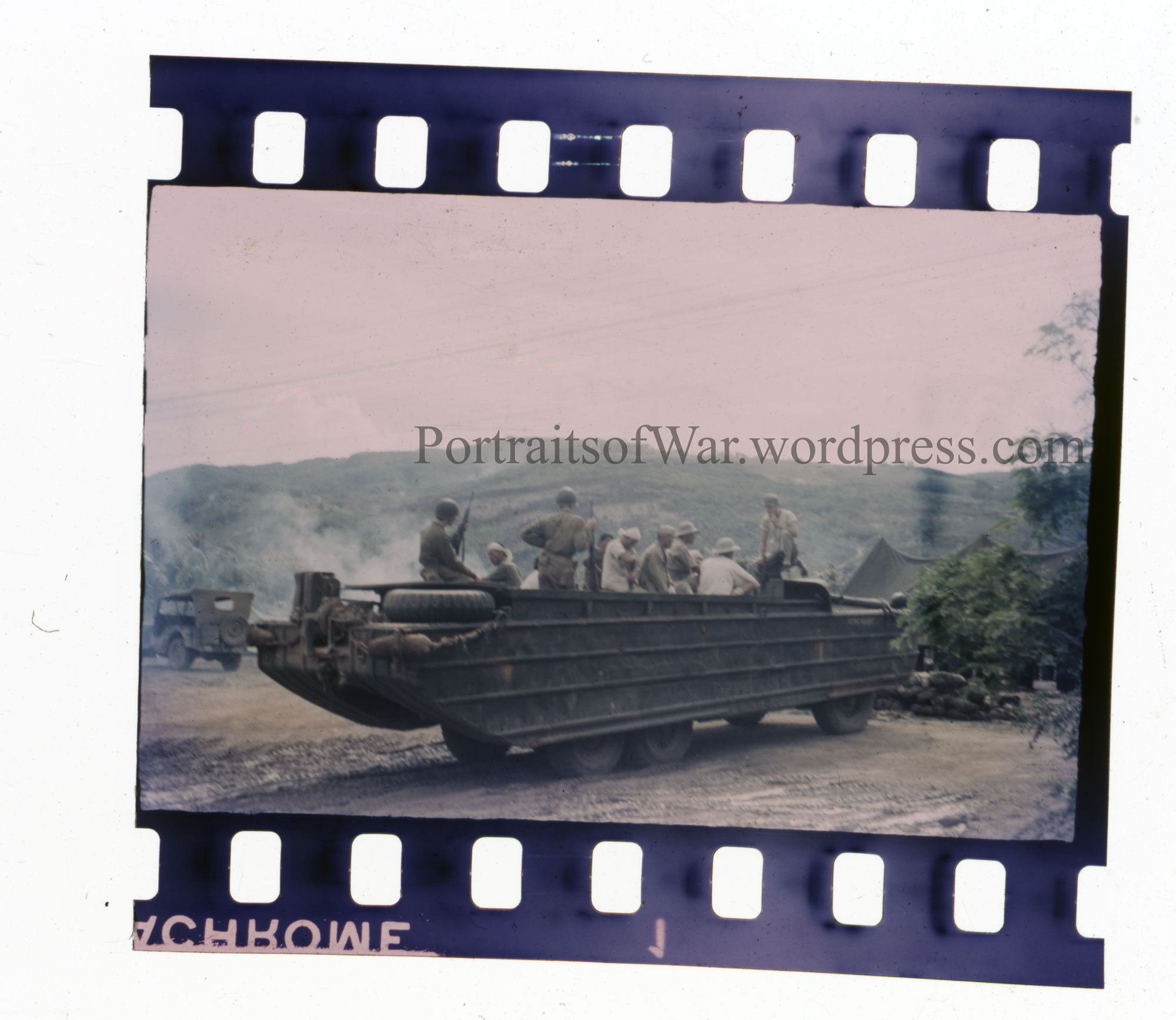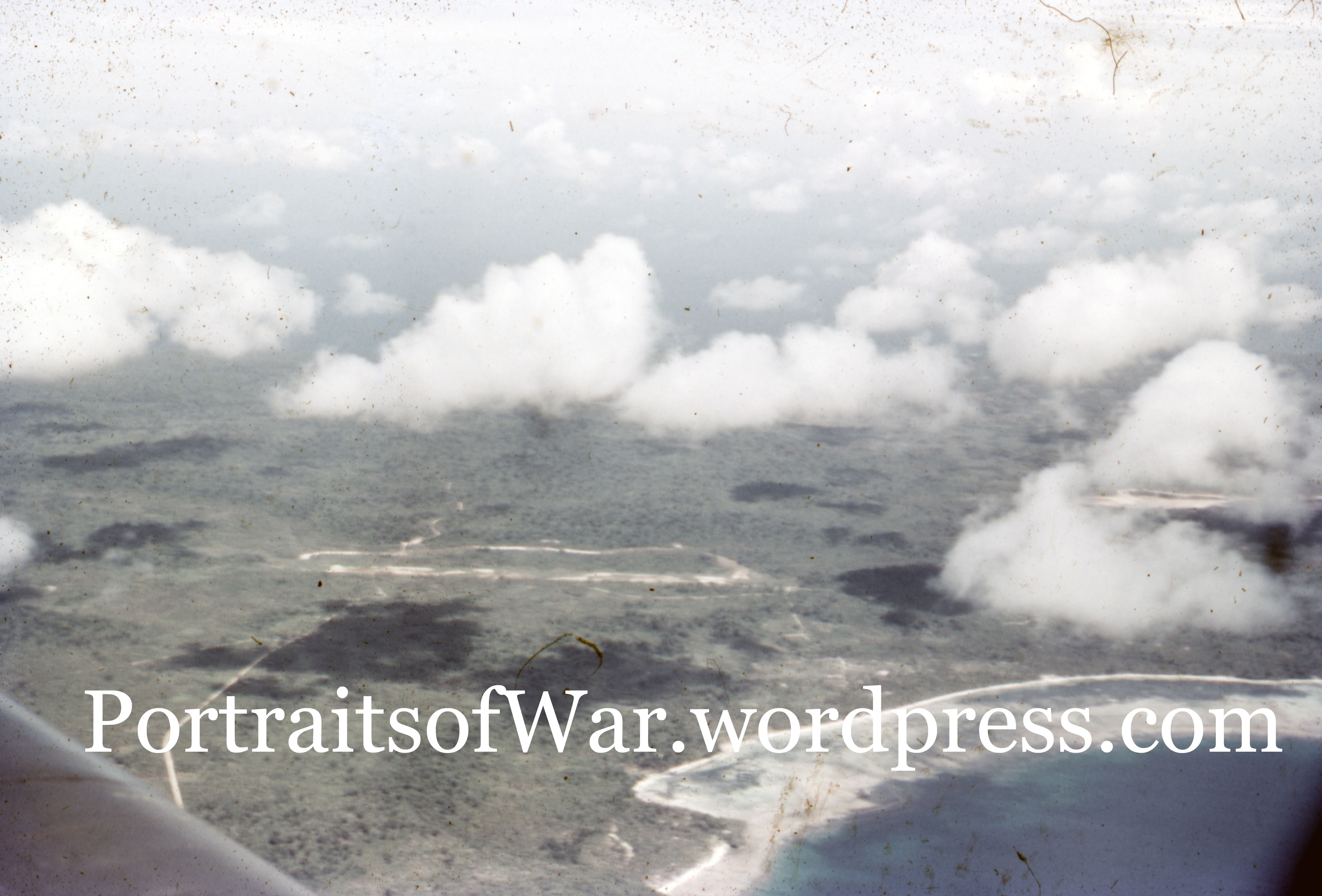 Shot from the cockpit of a F6F-3 Hellcat flown by Edward W. Simpson Jr. of the VF-35, this incredible set of images depicts the opening few hours of the infamous Invasion of Guam. Simpson carried his Kodak 35mm camera loaded with color film during many of the key battles of the Pacific, and PortraitsofWar has been lucky enough to acquire the entire collection. In this installment, I’ve scanned a series of shots taken during the Guam invasion. Many are identified as to location and were verbally described on a cassette tape that accompanied the collection.
