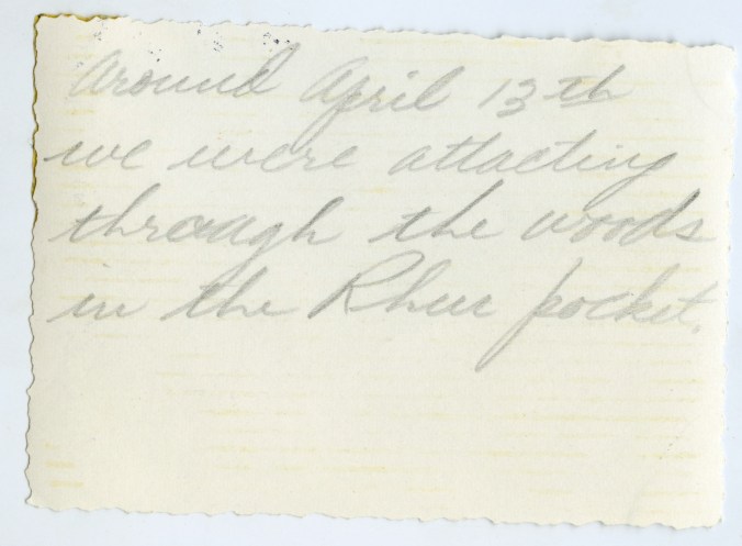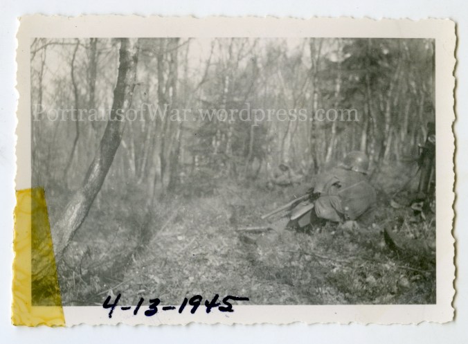 Amateur combat snapshots are nearly impossible to find. I only have a handful in my personal collection, and have only seen them for sale on rare occasions. In this photo, a veteran named Earl Reese snaps a photo while his squad is attacking through a forest on April 13th, 1945 while in the “Ruhr Pocket”. I have a collection of Reese’s photos and personal memoirs that were saved from the trash bin at an estate sale in California. Imagine images like these rotting away in a landfill?